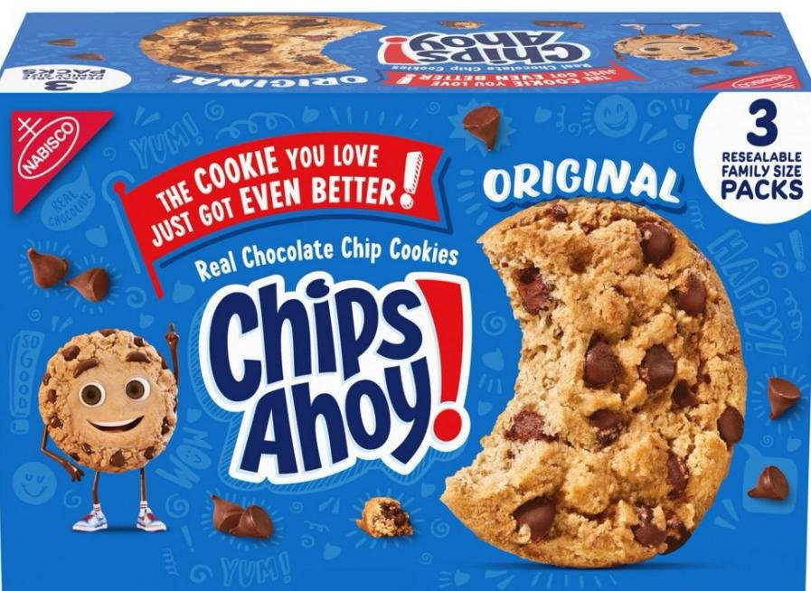 • Three 18.2 oz family sized packages of Chips Ahoy chocolate chip cookies