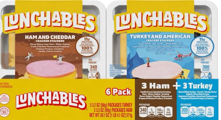 • One box of 3 lunchables turkey & American cracker stackers and three ham and cheddar cracker stackers