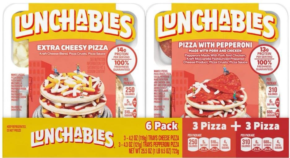 - Variety pack of Extra Cheesy Pizza with Pepperoni