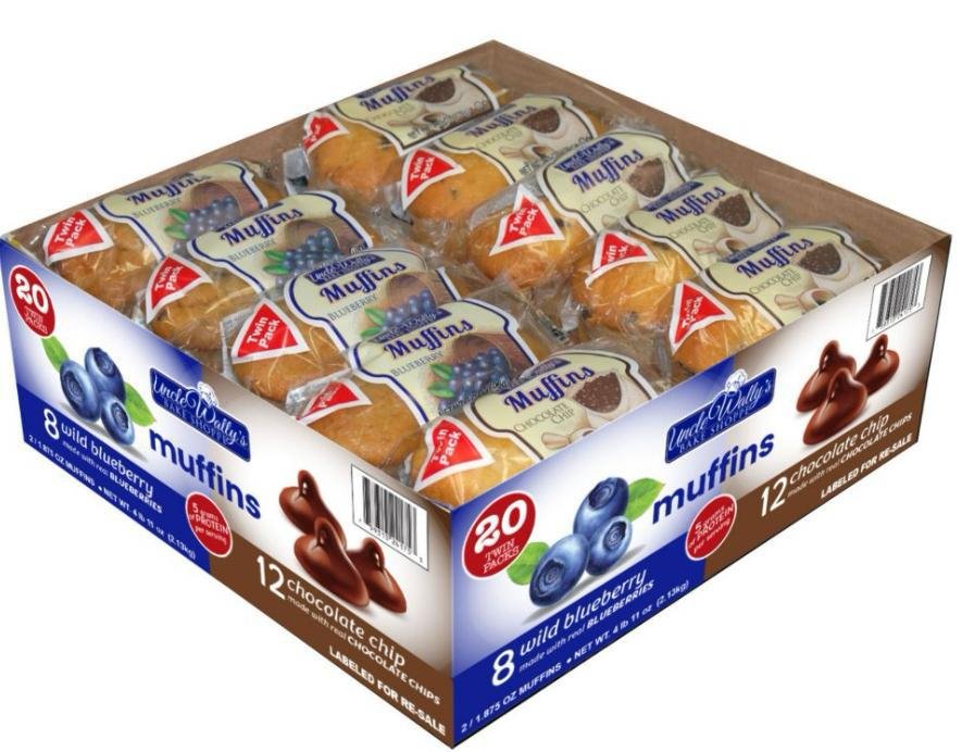 • 8 blueberry and 12 chocolate chip muffin twin packs